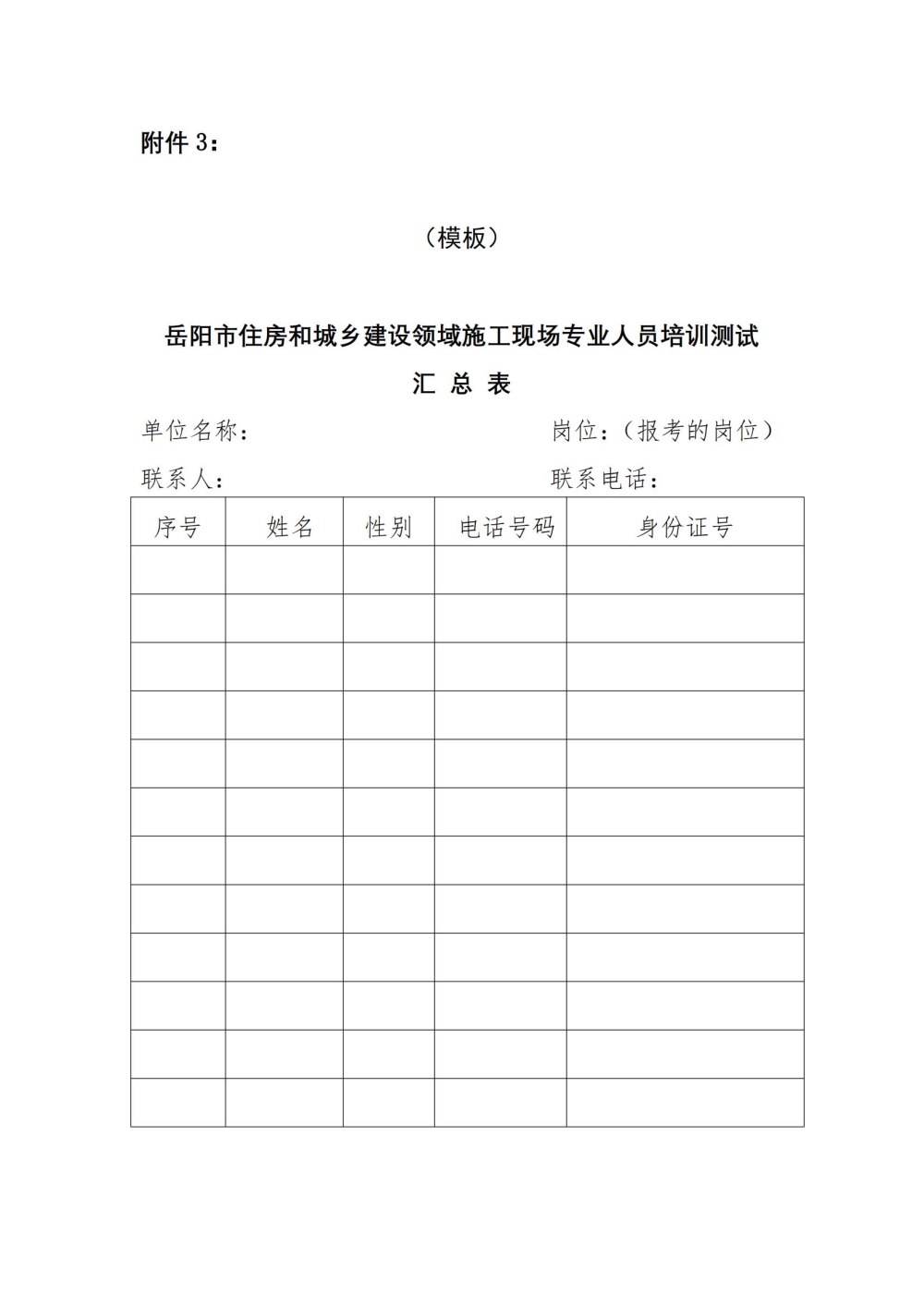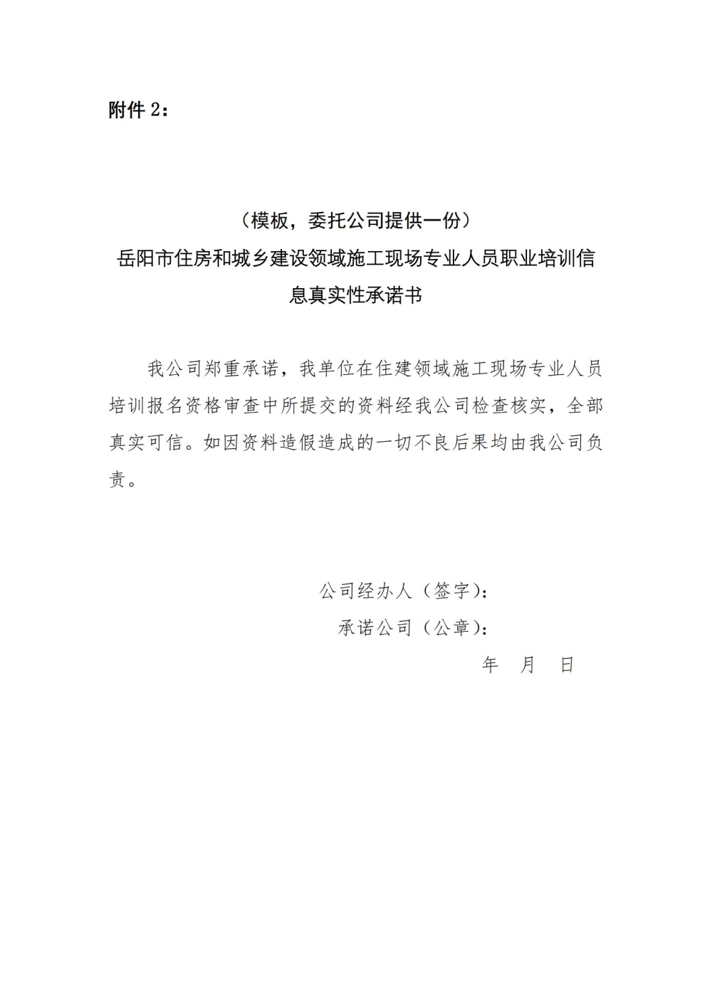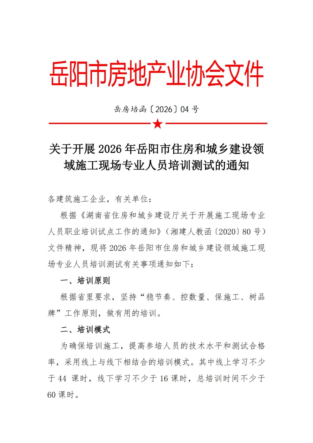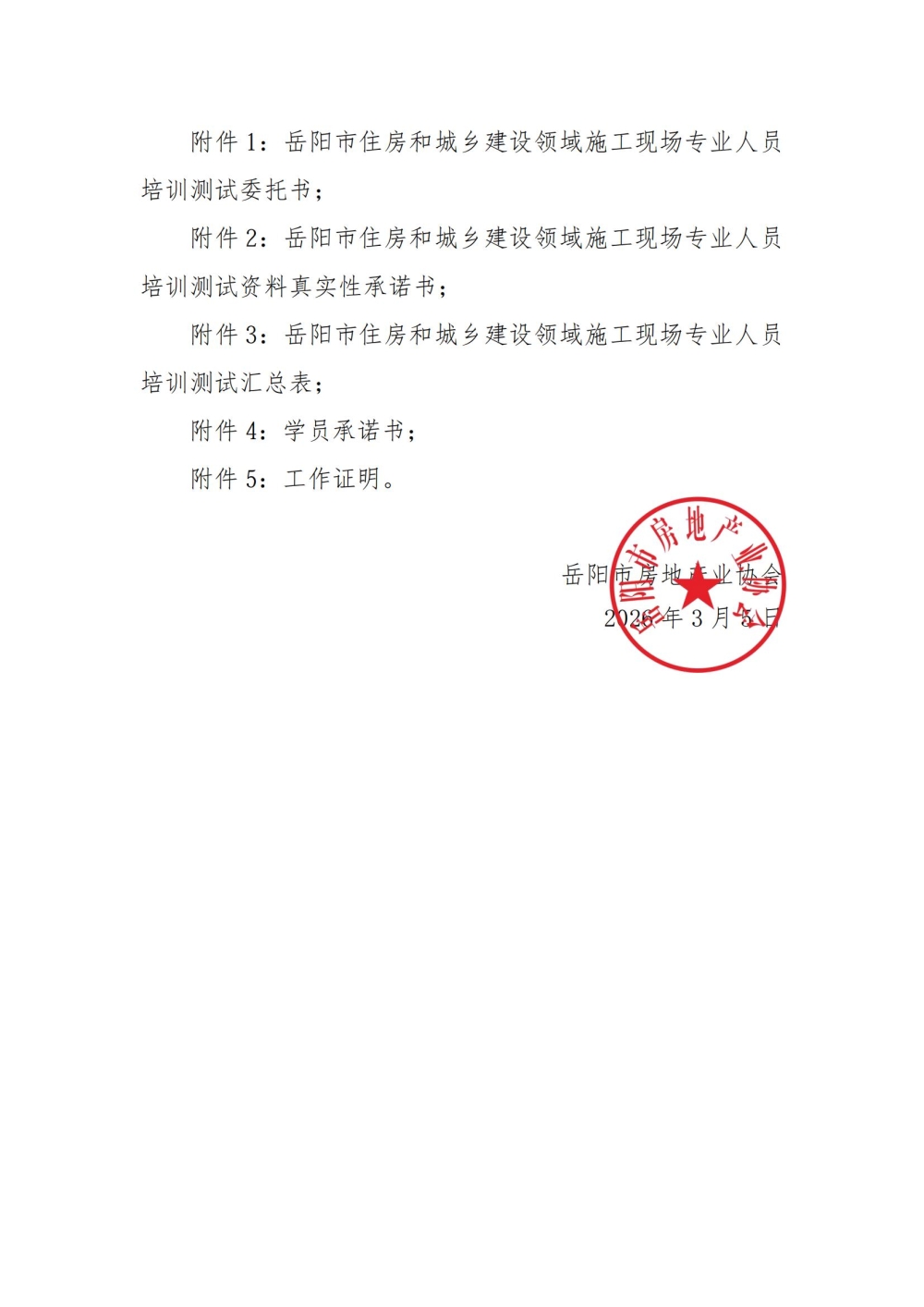 关于开展 2026 年岳阳市住房和城乡建设领域施工现场专业人员培训测试的通知