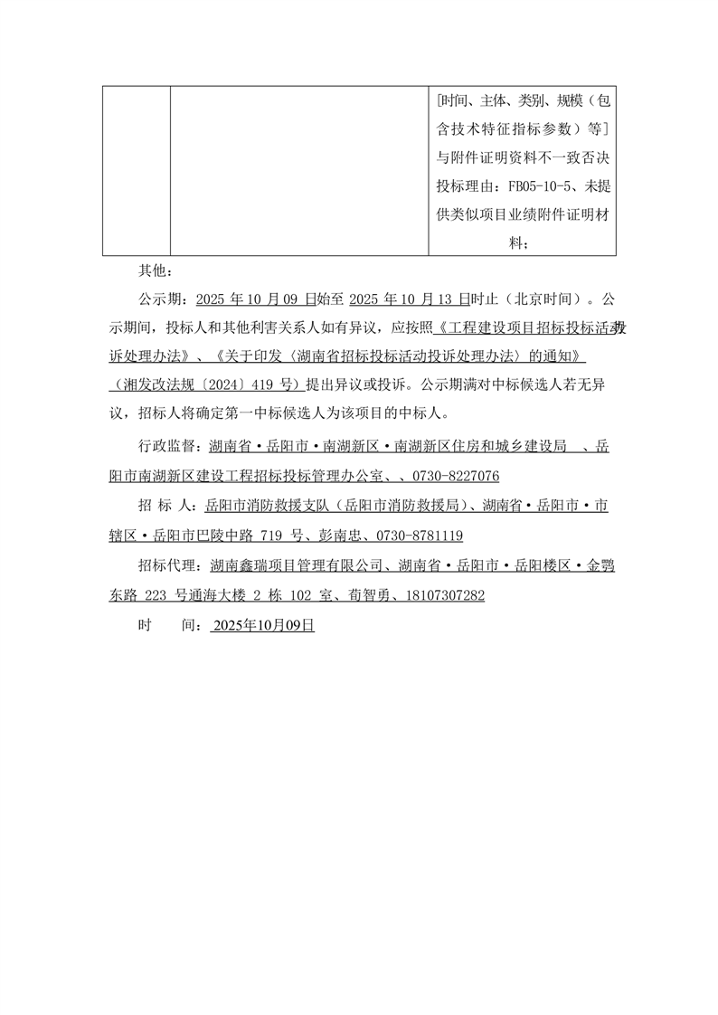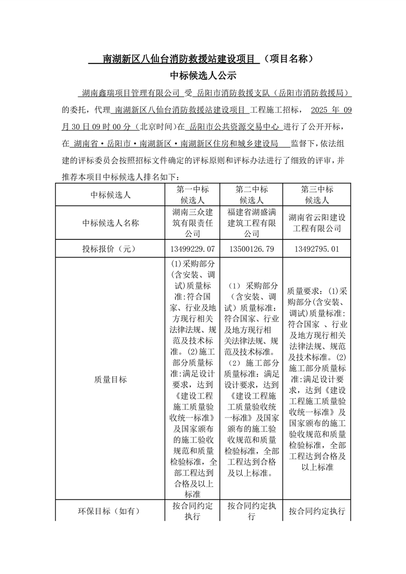 南湖新区八仙台消防救援站建设项目(项目名称)中标候选人公示