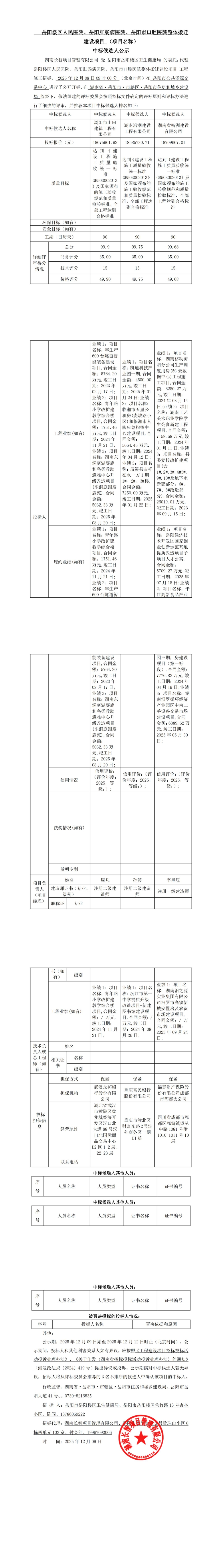 岳阳楼区人民医院、岳阳肛肠病医院、岳阳市口腔医院整体搬迁建设项目(项目名称) 中标候选人公示