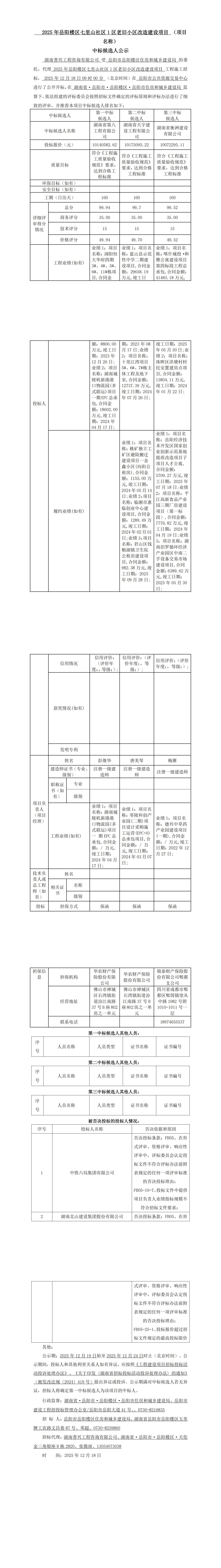 2025 年岳阳楼区七里山社区 1 区老旧小区改造建设项目 (项目名称) 中标候选人公示