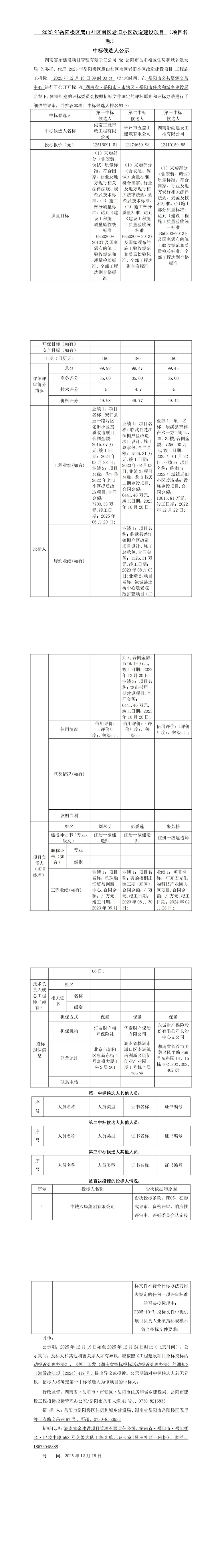 2025 年岳阳楼区鹰山社区南区老旧小区改造建设项目 (项目名称) 中标候选人公示