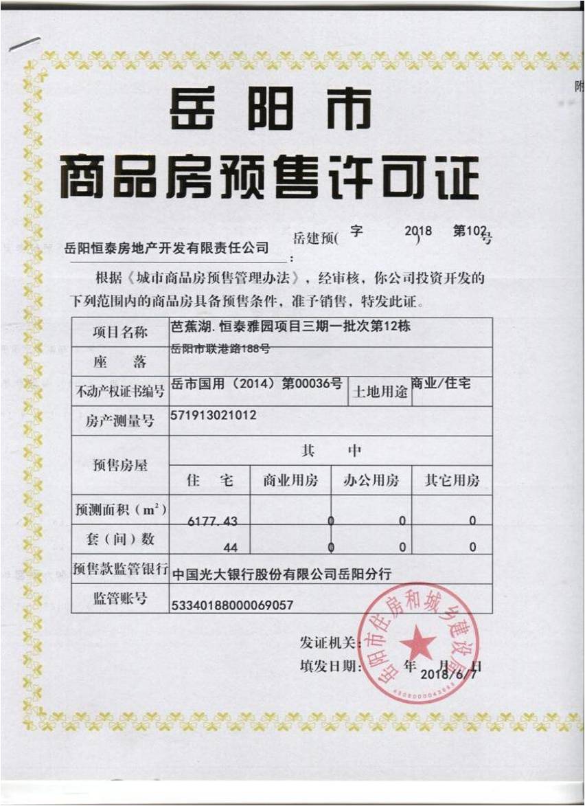 湖南泰格林纸集团恒泰房地产开发有限责任公司
