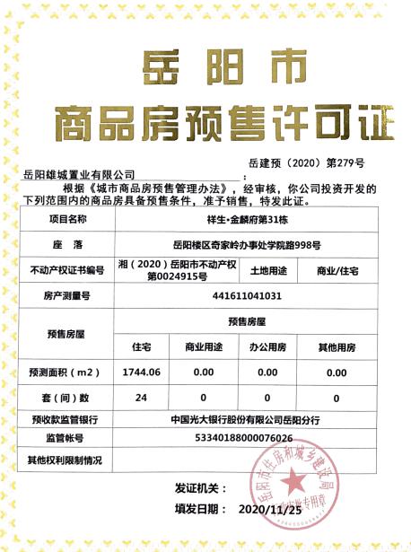 商品房预售许可证