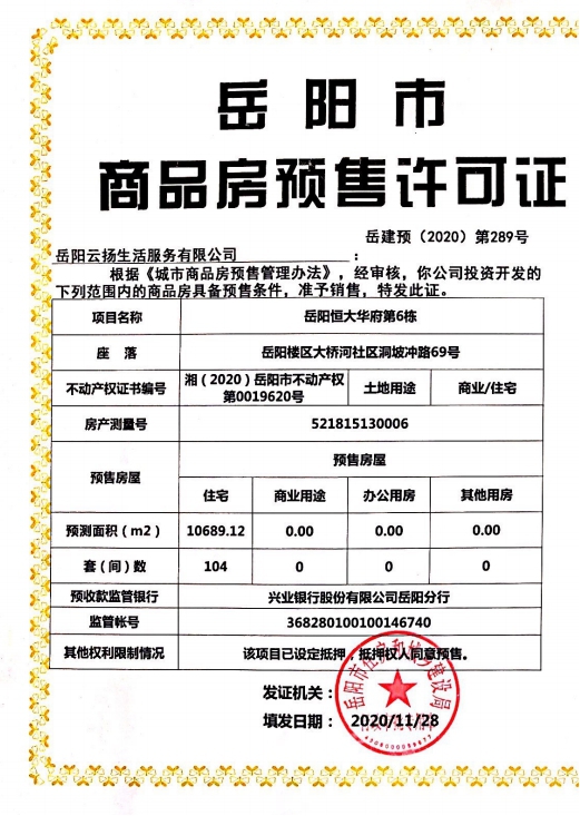商品房预售许可证