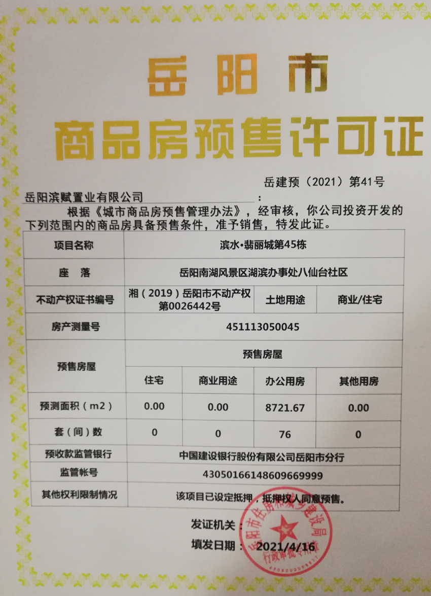商品房预售许可公示