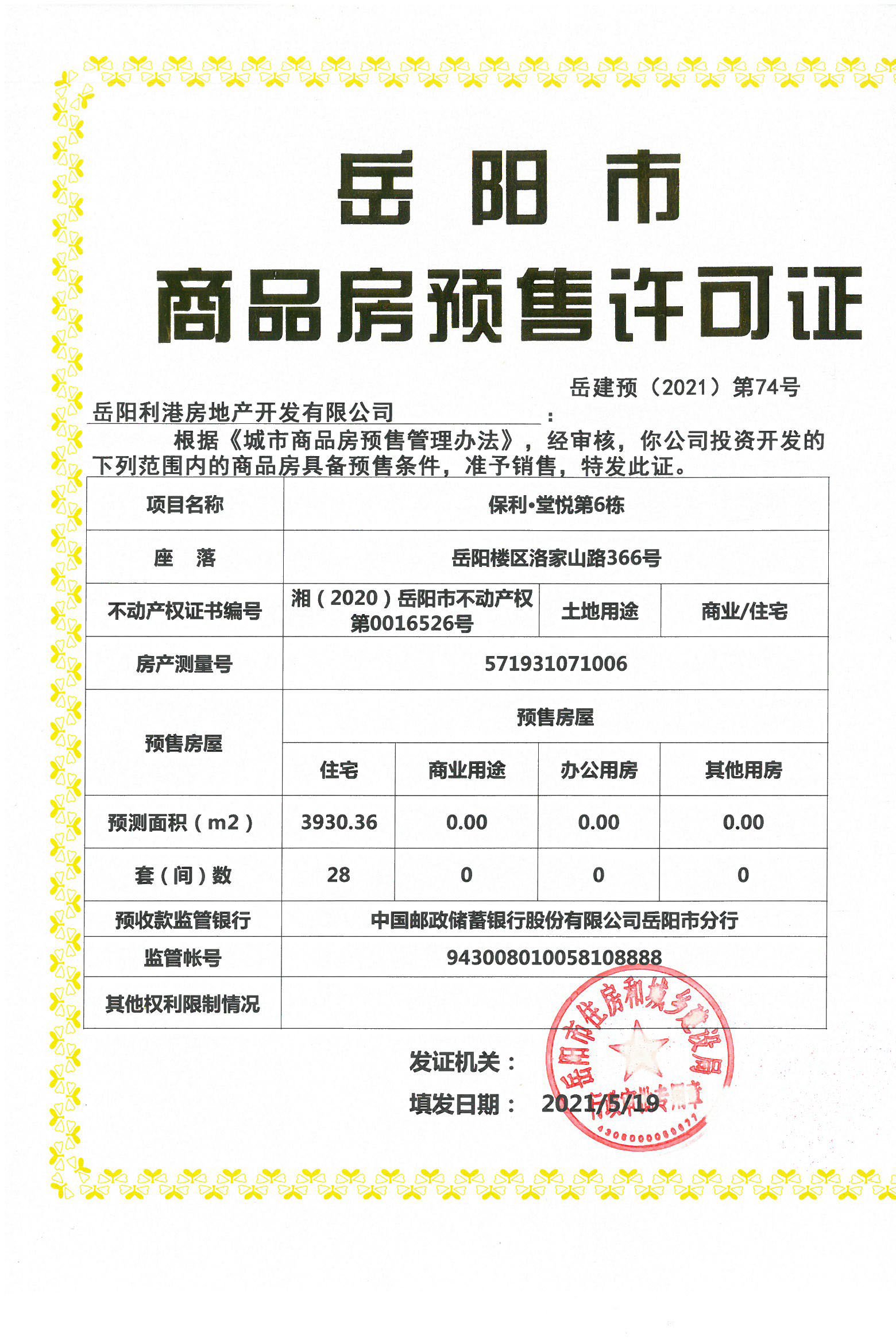 商品房预售许可证