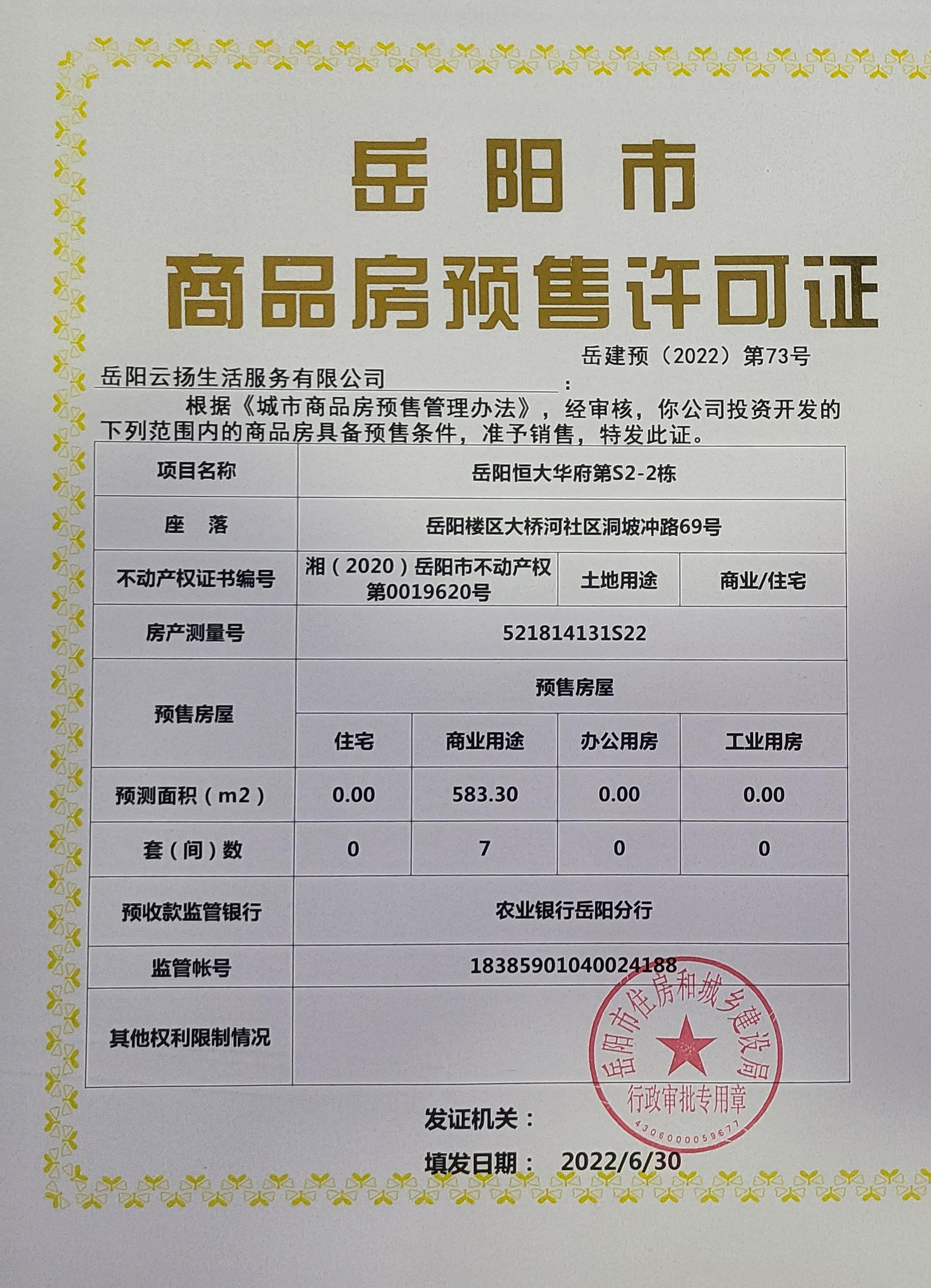 商品房预售许可证
