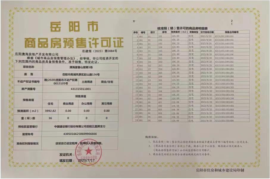 商品房预售许可公示