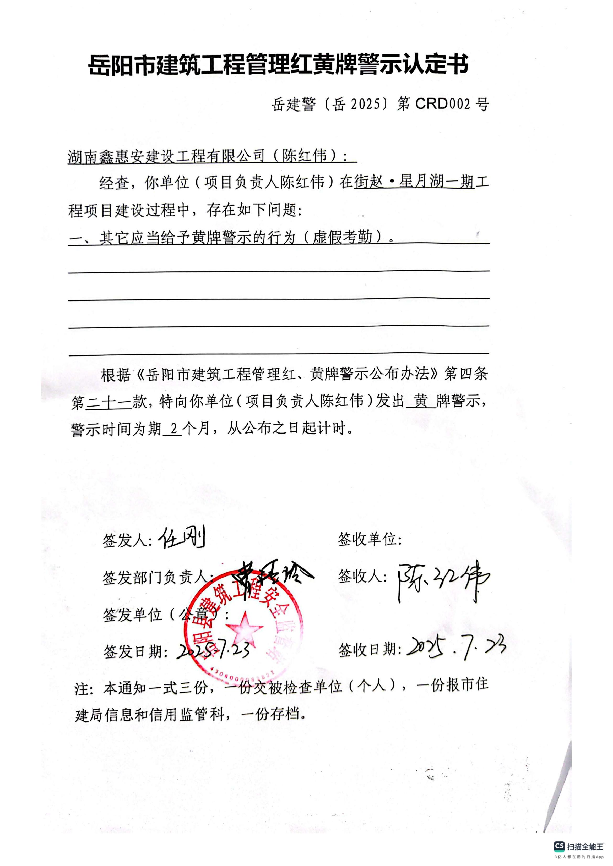 湖南鑫惠安建设工程有限公司项目负责人陈红伟