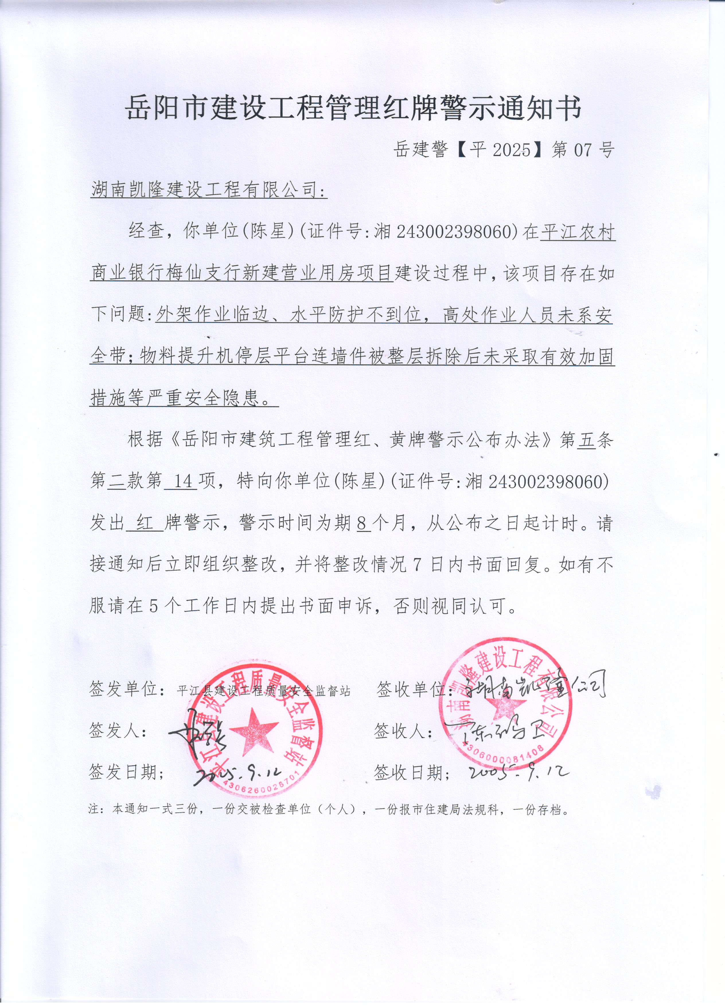 湖南凯隆建设工程有限公司项目负责人陈星
