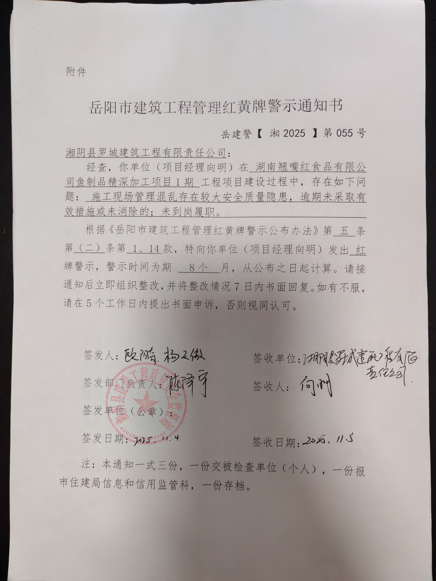 被警示单位(个人) 湘阴县罗城建筑工程有限责任公司项目经理向明