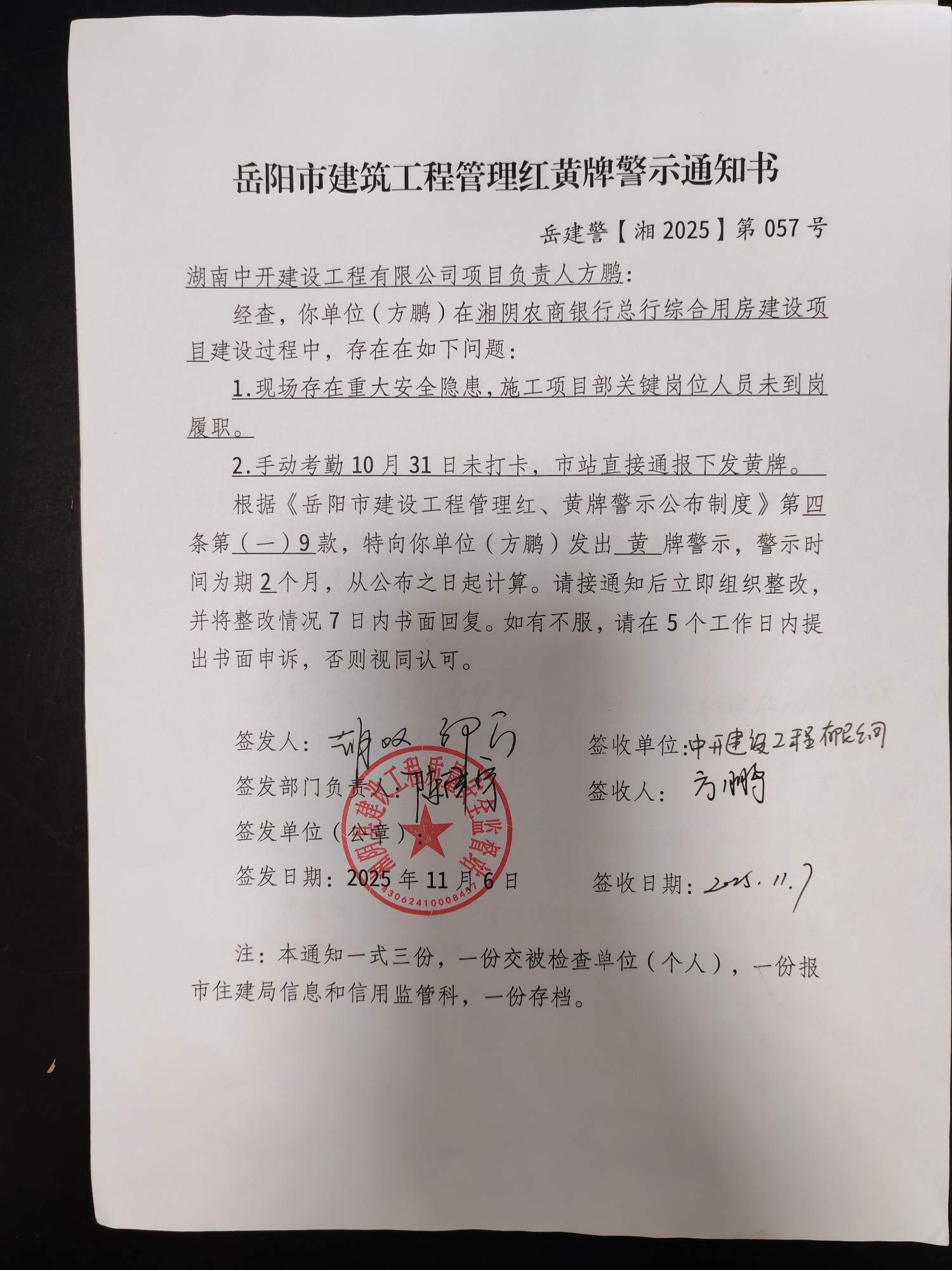 湖南中开建设工程有限公司项目负责人方鹏