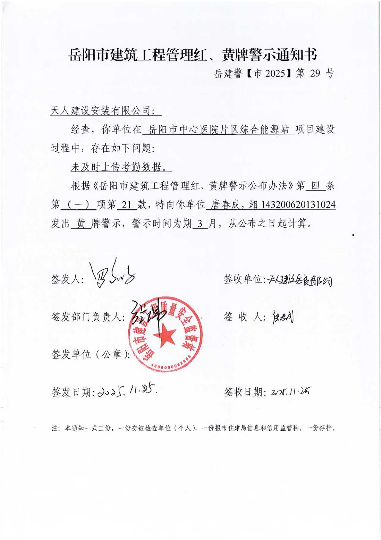 天人建设安装有限公司项目经理唐春成