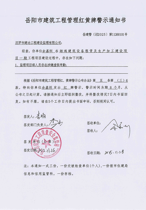 汨罗市建功工程建设监理有限公司总监余嘉圳