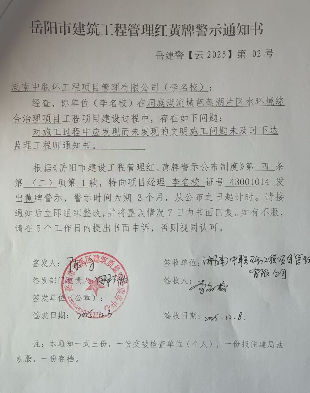 湖南中联环工程项目管理有限公司项目经理李名校