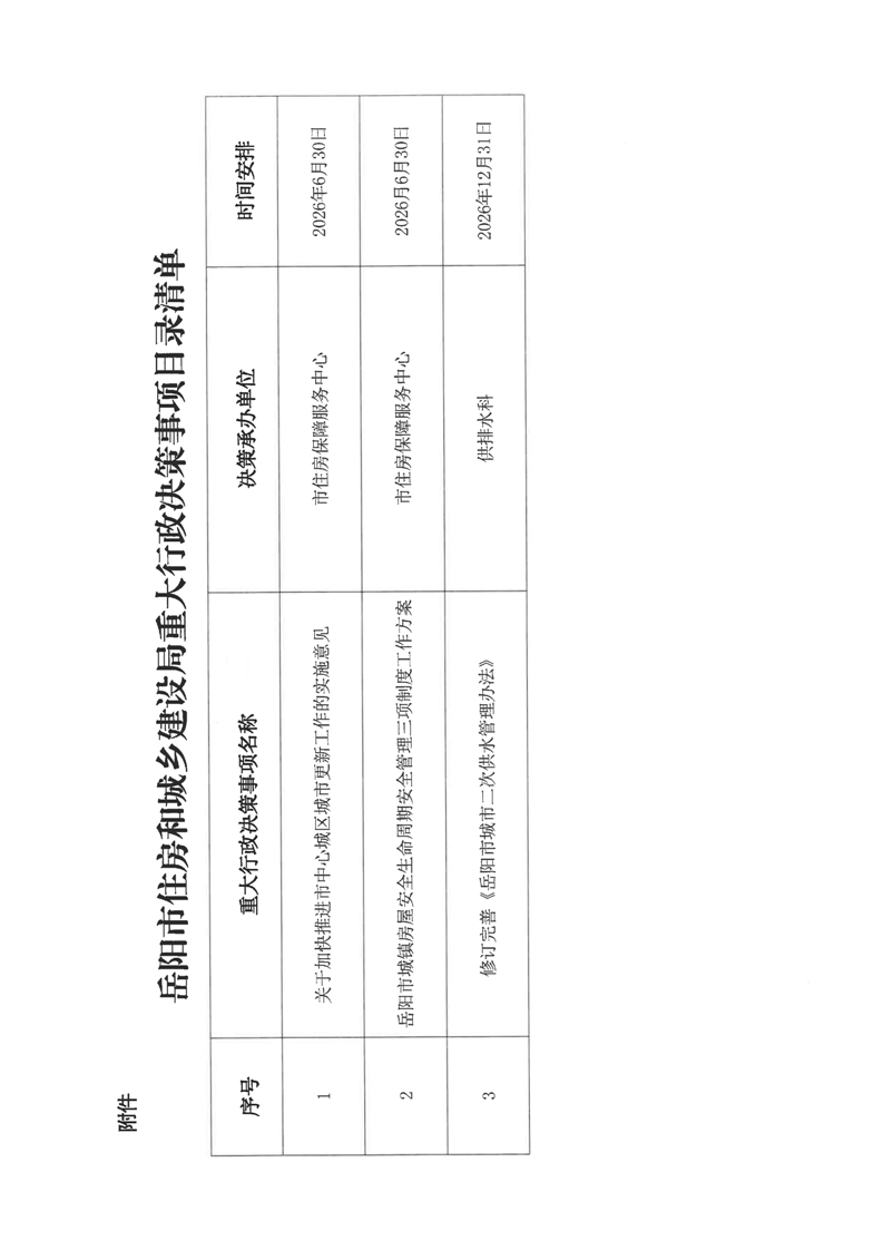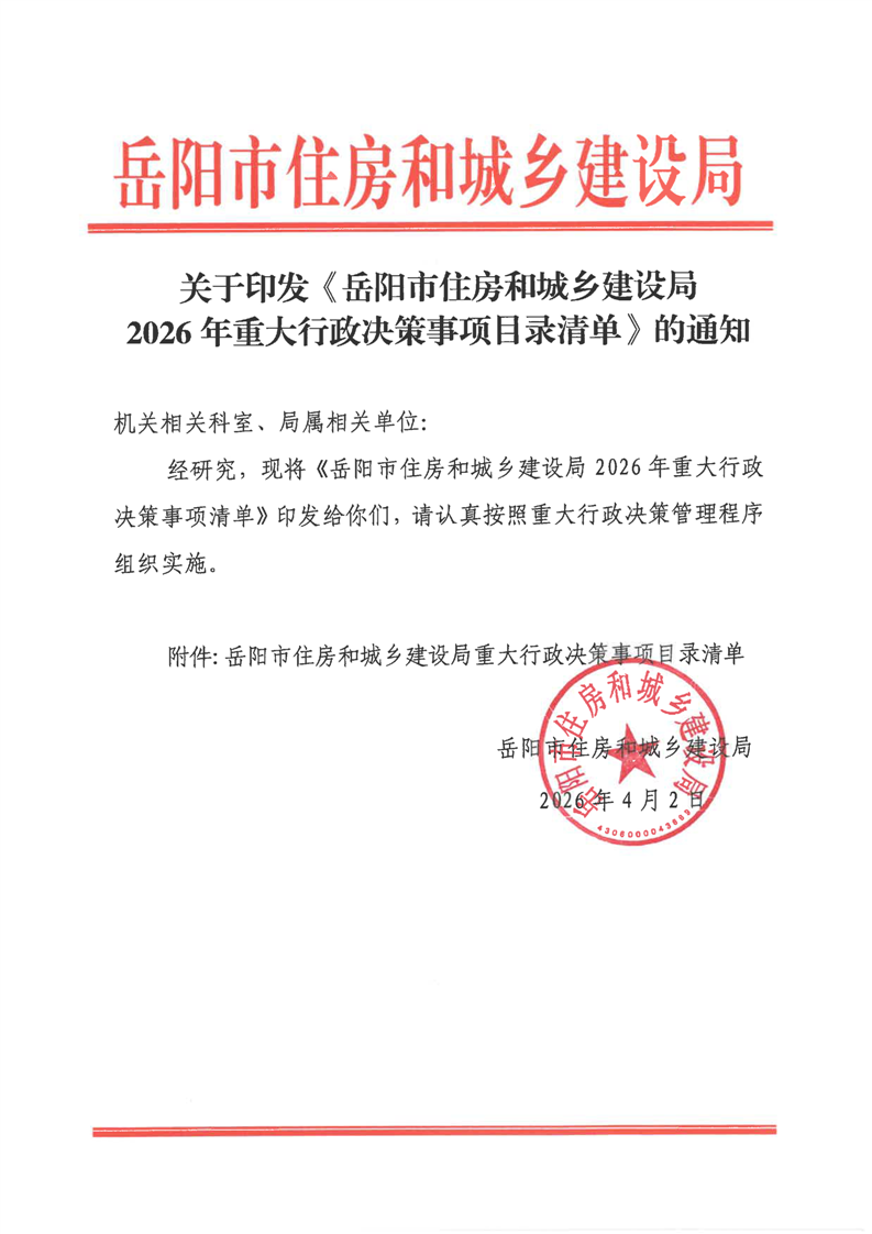 关于印发《岳阳市住房和城乡建设局2026年重大行政决策事项目录清单》的通知