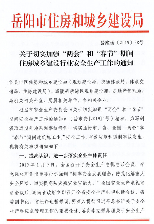 关于切实加强“两会”和“春节”期间住房城乡建设行业安全生产工作的通知