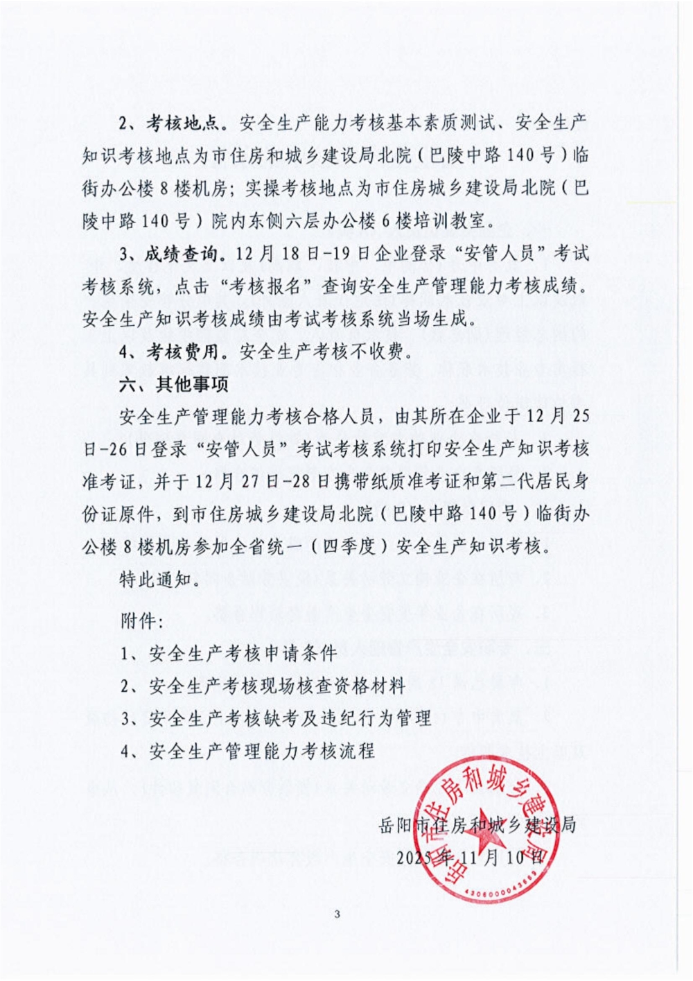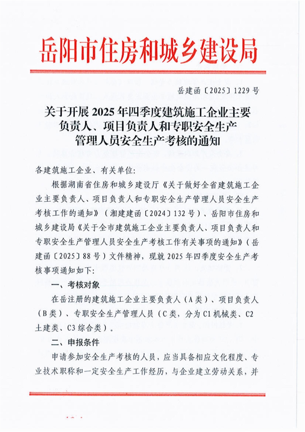 关于开展2025年四季度建筑施工企业主要负责人、项目负责人和专职安全生产管理人员安全生产考核的通知