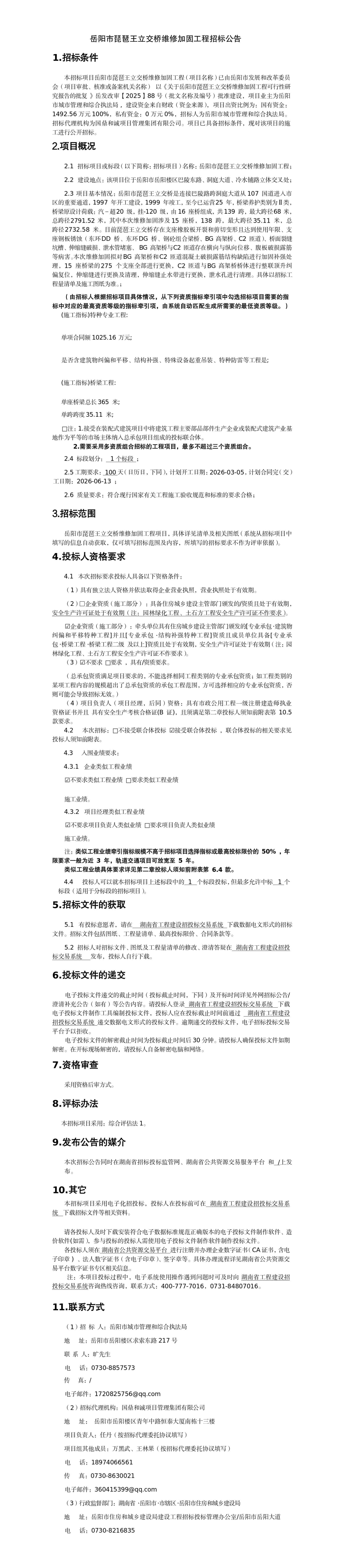岳阳市琵琶王立交桥维修加固工程招标公告