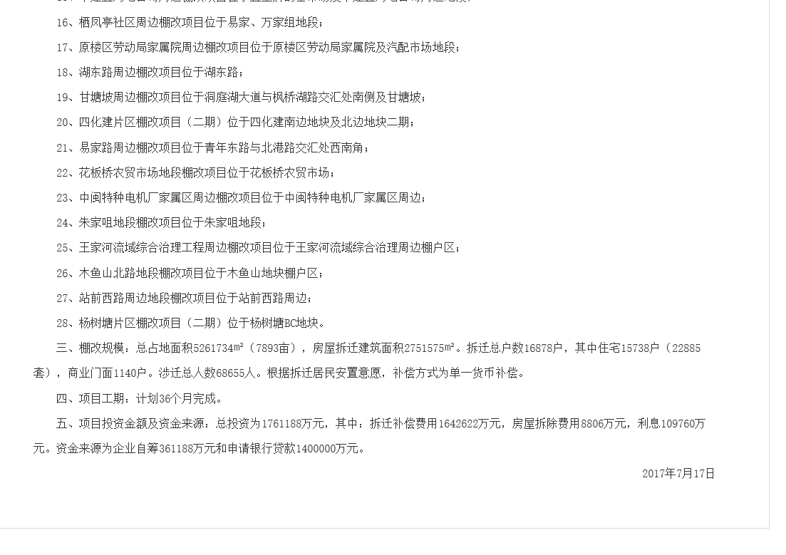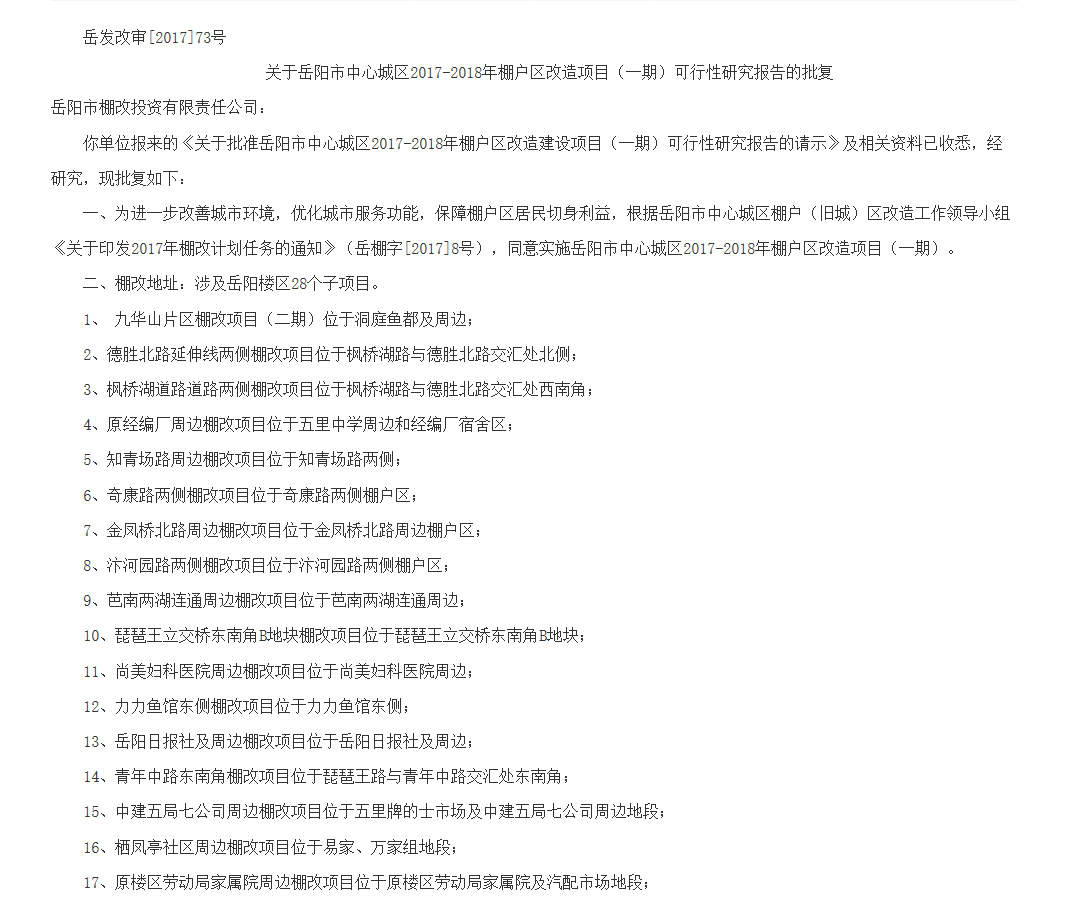李冰先生: 您的来信收悉,经市棚改办核实,现回复如下: 1、征收文件分国有土地和集体土地两个方面,国有土地上房屋征收适应的市级文件有岳政发【2012】13号和岳政办发【2014】9号;集体土地征收与房屋拆迁适应的文件是湘政函【2014】113号。岳政发【2012】13号和岳政办发【2014】9号暂未有修改的计划,湘政函【2014】113号正在修改中。 2、2018-2020年棚改规划中,岳阳楼区三年棚改共计26133户,其中,2018年计划7800户,2019年计划8192户,2020年计划10141户。但实际计划会有较大调整,2018年计划6013户,2019年暂定计划6195户,2020年计划还未定。 3、琵琶王立交桥东南角B地块计划征收面积77亩,拟列入2019年棚改计划,但需引进社会资本才能设施,存在不确定性。 特此回复。 市棚改办 |