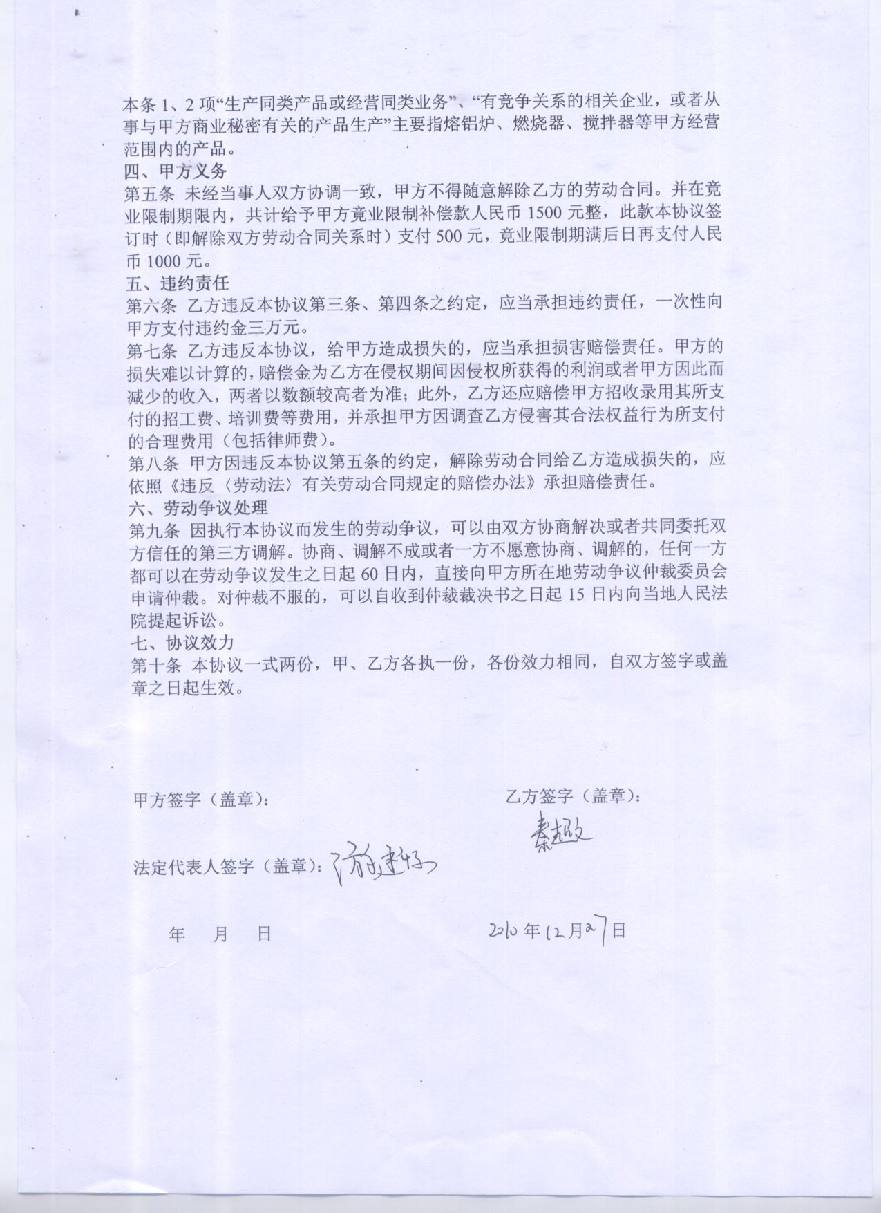 后来在2010年12月离职,该公司又一定要求补签了一份保密协议,并且当时不签就不办理离职手续。这份协议约定补偿1500元保密费用,分两次支付(离职时支付500,竞择业期满后支付1000)。